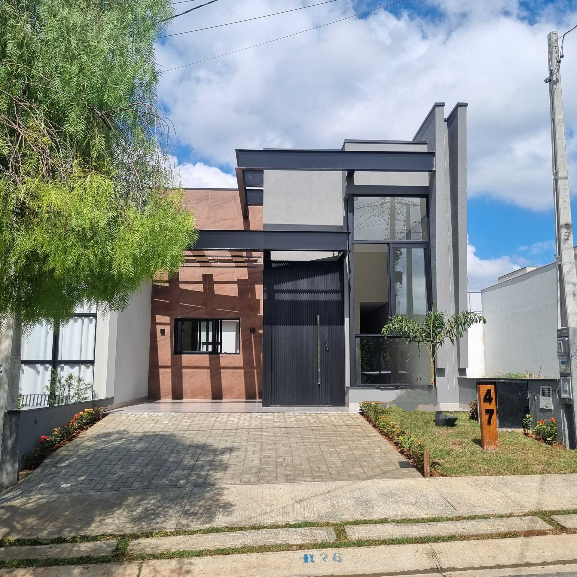 - Esquadrias em alumínio preta com persiana elétrica e tela mosqueteiro nos dormitórios.